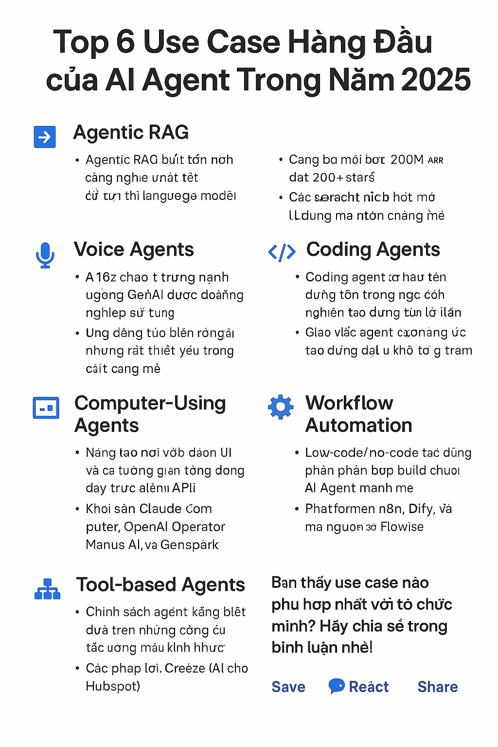 Quote from bsdinsight on 5 June 2025, 15:07Top 6 use case hàng đầu của AI Agent trong năm 2025